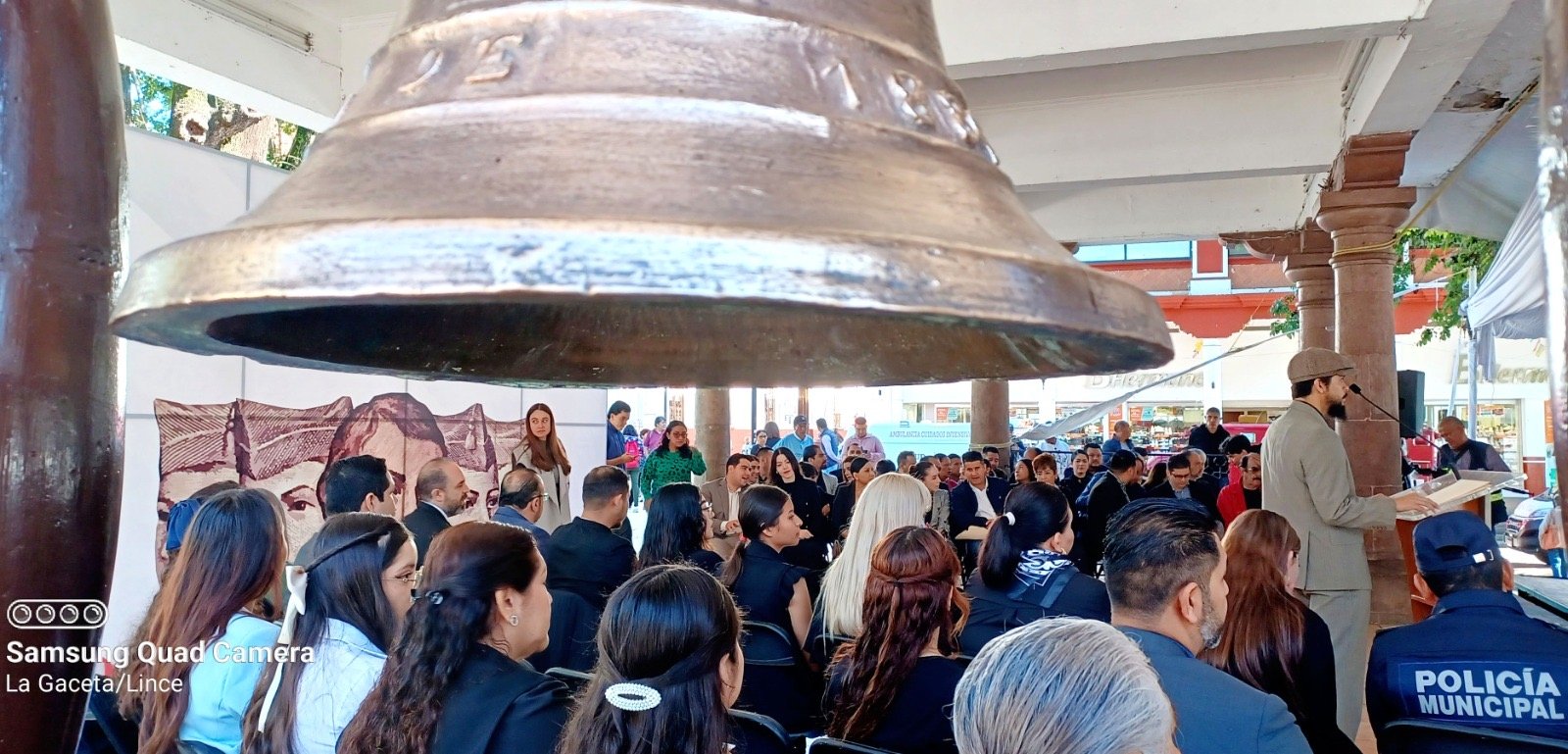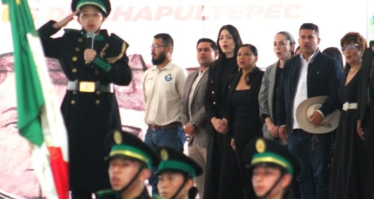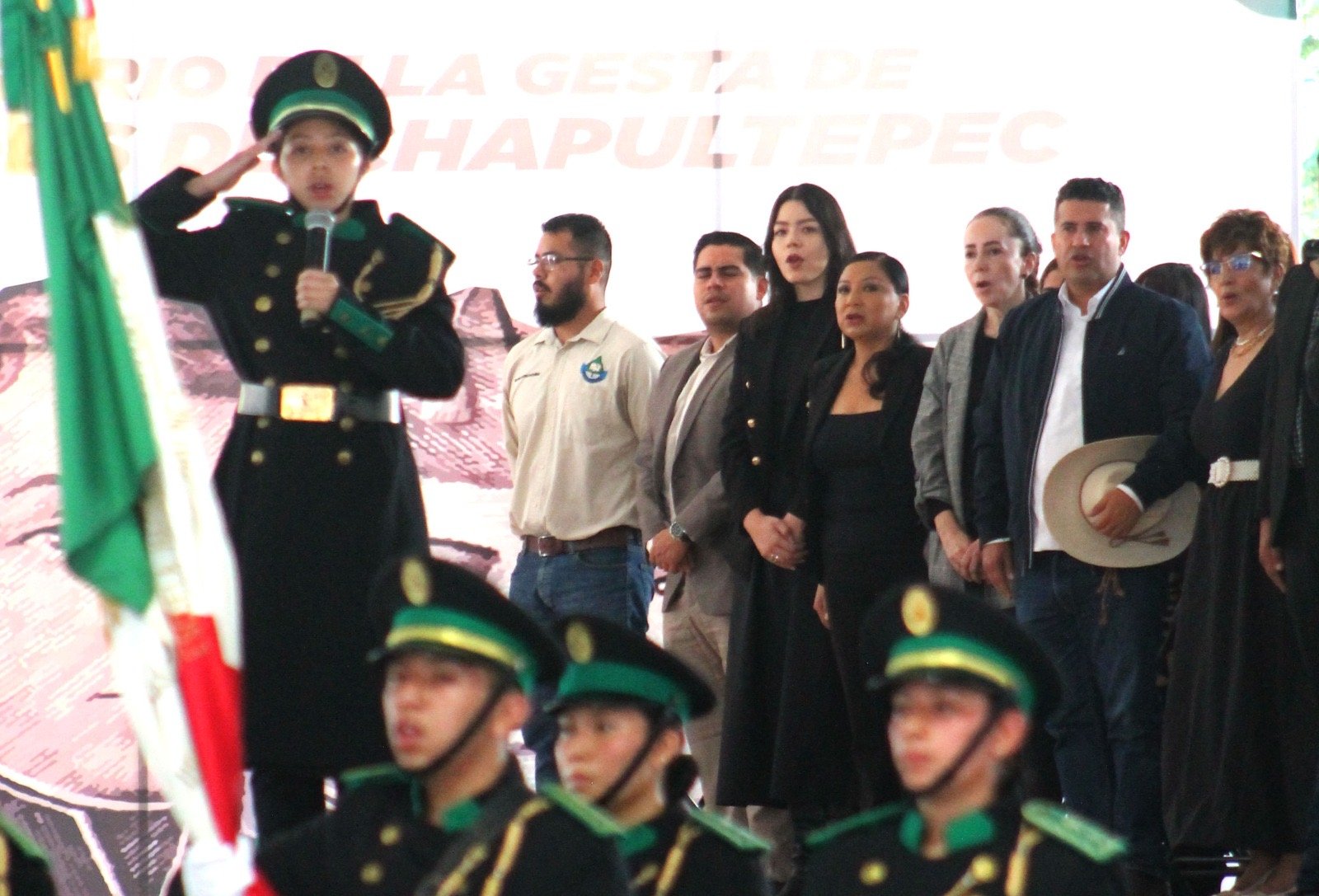 Una guardia de honor y colocación de ofrenda floral, frente a una imagen que posiblemente ilustre a los Niños Héroes. Asistieron, el alcalde Carlos Manzo, regidores y funcionarios municipales.