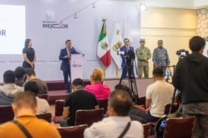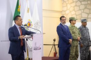 En este ejercicio con medios, Torres Piña presentó un informe sobre los avances en materia de seguridad, en el que resaltó una disminución del delito de homicidio doloso, así como las acciones y detenciones relevantes llevadas a cabo como parte de la Estrategia Nacional Antiextorsión.