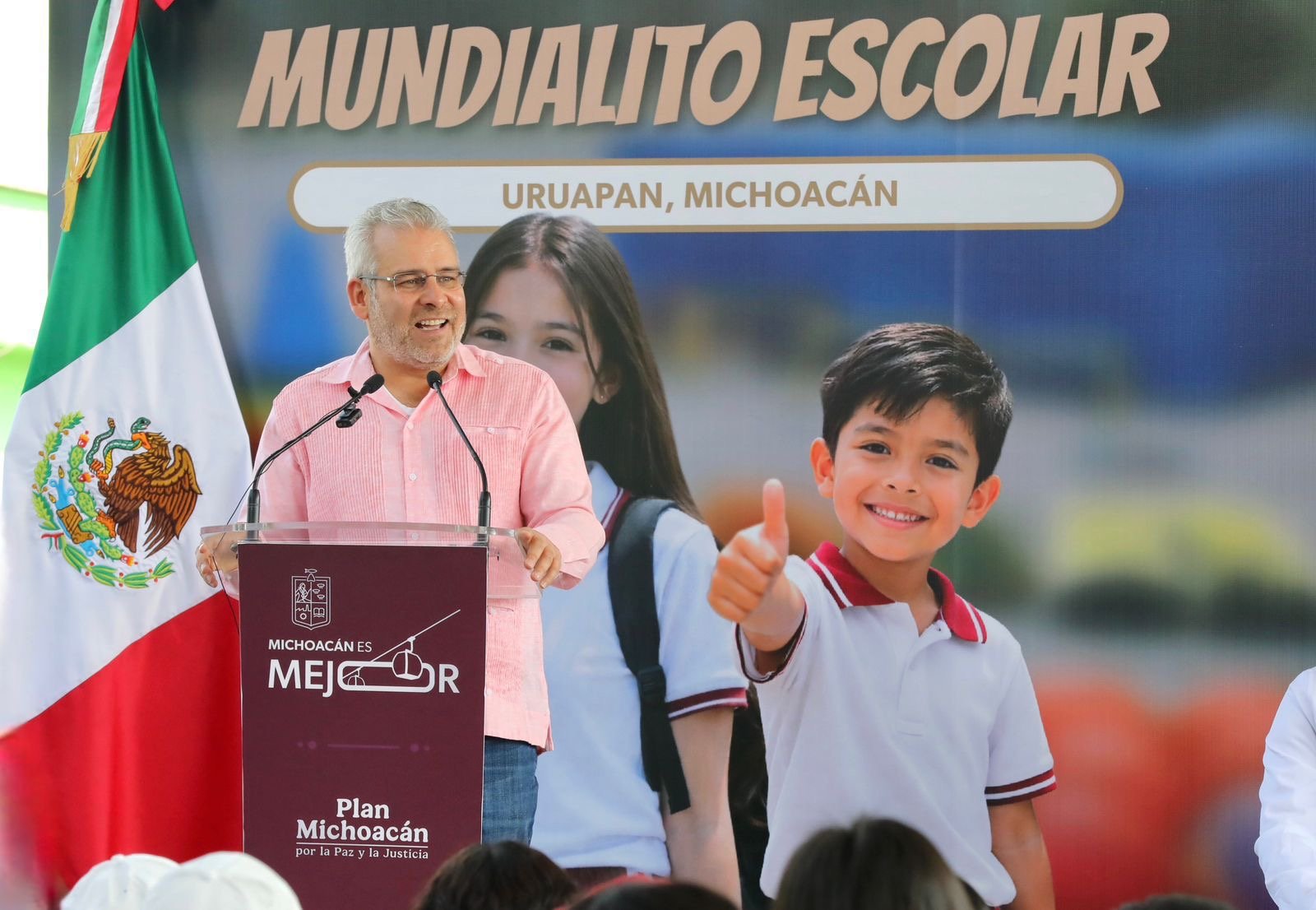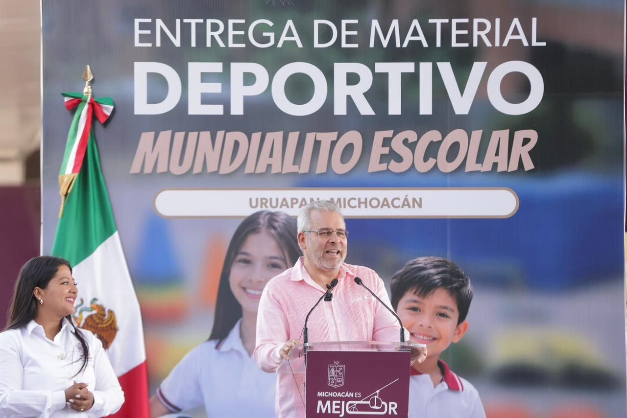 *Uruapan, Michoacán, 15 de abril de 2026.-* El gobernador Alfredo Ramírez Bedolla arrancó en el municipio de Uruapan, la entrega de material deportivo rumbo al Mundialito Escolar 2026, en beneficio de más de 234 mil estudiantes de mil 405 escuelas de Michoacán.