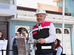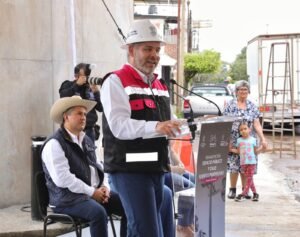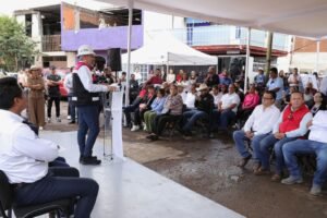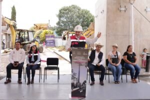 *Uruapan, Michoacán, 25 de agosto de 2025.-* El gobernador Alfredo Ramírez Bedolla arrancó la rehabilitación integral de espacio público y de la calle Fuentes Purépechas, en la colonia Villas de la Fuente del municipio de Uruapan, como parte de las 22 obras complementarias del teleférico.