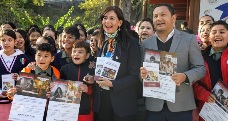 Con el objetivo de promover una vida sana y prevenir las adicciones y frente a cientos de alumnas y alumnos, comenzó la entrega de 400 mil materiales de apoyo para docentes, estudiantes, padres y madres de familia, los cuales contemplan guías y carteles.