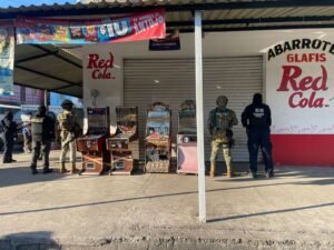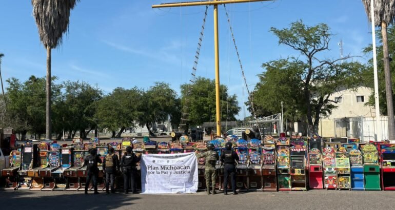 *Lázaro Cárdenas, Michoacán, 29 de diciembre de 2025.-* En un operativo conjunto, elementos de las secretarías de Seguridad Pública (SSP) y de Marina (Marina), en apoyo a la Fiscalía General del Estado (FGE), aseguraron 183 máquinas tragamonedas en el municipio de Lázaro Cárdenas. La acción derivó de la cumplimentación de 13 órdenes de cateo en diversos inmuebles y una intervención adicional en flagrancia.