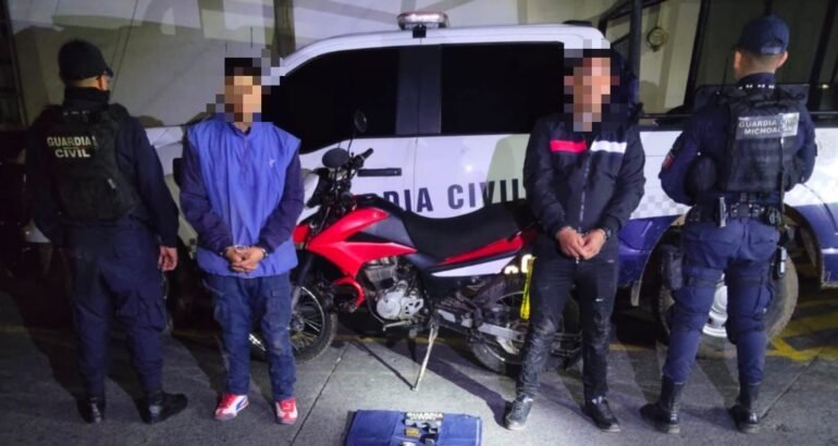 El hecho ocurrió en las inmediaciones de la colonia Ejército Mexicano de este municipio, donde los agentes de la Guardia Civil aseguraron a las personas en mención y les decomisaron un arma de fuego calibre .9 milímetros, 13 cartuchos útiles, un cargador y un automotor marca Italika.