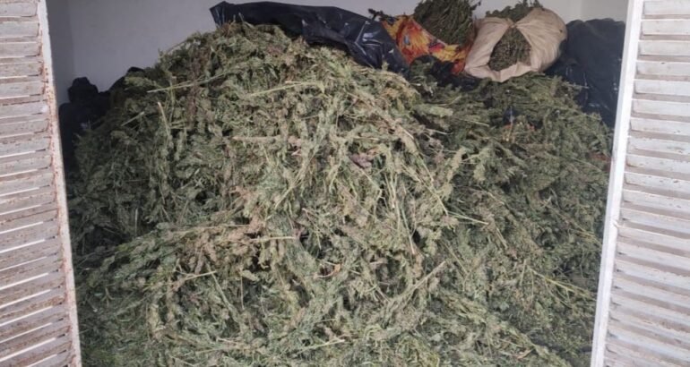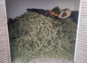 Momentos después, en una brecha de terracería perteneciente a la localidad Rincón del Valdés, se localizaron un aproximado de 600 kilogramos de hierba verde y seca, al parecer mariguana. También en las inmediaciones, encontraron dos camiones de volteo marca Kenworth con más de mil 10 cajas de cartón con equipo de cómputo.