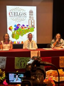 La regidora de Educación, Cultura y Turismo del municipio, Sarita Aguirre Lemus, explicó que las Cuelgas hacen referencia a los troncos de árboles que se adornan con diversos elementos festivos. “Esta es una ofrenda al patrón, es una tradición única. Estos troncos van acostados y les colgamos racimos de plátanos y estos recorren las principales calles”.