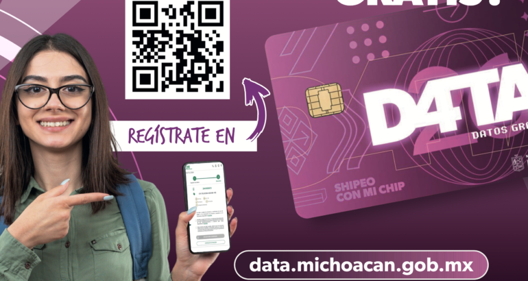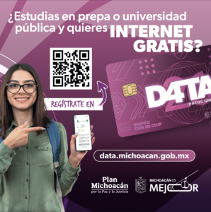 ¡Atención, jóvenes! 25 Feb 2026 Facebook Twitter Stumble linkedin Pinterest WhatsAppt More Si estudian en prepa o universidad pública, en Michoacán tienen el derecho a internet gratis. Regístrate en data.michoacan.gob.mx. Con D4tA, datos gratis, estudiar y conectarse será más fácil que nunca. #MichoacánEsMejor 2026-02-25