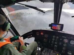 *Nuevo Urecho, Michoacán, 8 de abril de 2026.-* Con el objetivo de sofocar el incendio forestal registrado en la localidad de La Cebadilla, el Gobierno de Michoacán fortaleció el despliegue operativo en el municipio de Nuevo Urecho. La estrategia incluye el apoyo aéreo de un helicóptero equipado con helibalde, perteneciente a la Secretaría de Seguridad Pública.