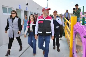 Acompañaron al gobernador la diputada federal, Miroslava Shember Domínguez; representantes del sector empresarial de la región; autoridades estatales y municipales; así como estudiantes del Colegio de Bachilleres, habitantes de la ciudad y niñas y niños beneficiados.
