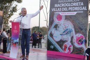 *Morelia, Michoacán, 21 de noviembre de 2025.-* El gobernador Alfredo Ramírez Bedolla inauguró la macroglorieta de Villas de Pedregal, la cual cuenta con una inversión 100 por ciento estatal de 20 millones de pesos para el rescate de este espacio público al poniente de Morelia.