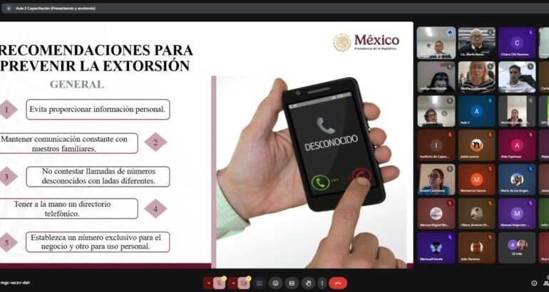 La capacitación, impulsada en coordinación con la Secretaría de Seguridad y Protección Ciudadana (SSPC), fue encabezada por el Fiscal General, Carlos Torres Piña, quien destacó la importancia de mantener espacios de formación y diálogo que permitan atender y prevenir este fenómeno, por lo que hizo un llamado a las y los comunicadores a informar a la ciudadanía sobre las recomendaciones emitidas por la institución en caso de ser víctimas de extorsión, reforzando así el papel clave que desempeñan en la difusión de medidas preventivas, así como la cultura de la denuncia.