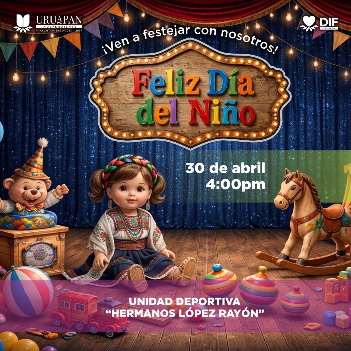 Este 30 de abril, a las 4:00 de la tarde, en la Unidad Deportiva “Hermanos López Rayón”, viviremos una tarde llena de alegría, juegos y sorpresas 🎈🎁