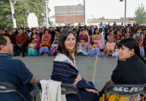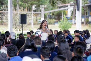 *Paracho, Michoacán, 9 de diciembre de 2025.-* La cercanía, el diálogo con maestras, maestros y la escucha de las comunidades son clave para avanzar en la reconstrucción del tejido social y avanzar hacia una cultura de la paz, señaló la secretaria de Educación, Gabriela Molina, al realizar una gira de trabajo en el municipio de Paracho, donde el programa Jalo a Estudiar, Jalo por la Paz, llega a 2 mil 170 estudiantes.