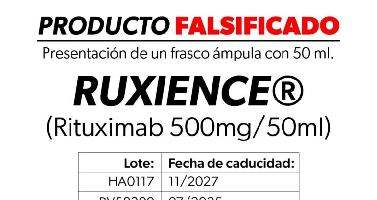 *Morelia, Michoacán, 9 de febrero del 2026.-* La Comisión Federal para la Protección contra Riesgos Sanitarios (Cofepris), a través de la Secretaría de Salud de Michoacán (SSM), informa a la población sobre la falsificación del medicamento Ruxience®️ (Rituximab) 500 mg/50 mL, solución inyectable, en presentación de caja con un frasco ámpula con 50 mL.