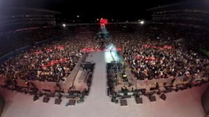 *Morelia, Michoacán, 17 de agosto de 2025.-* Carín León conquistó a más de 56 mil personas con un concierto épico en el Estadio Morelos. El cantante de regional mexicano ofreció un espectáculo gratuito que duró cerca de tres horas, donde interpretó sus más grandes éxitos, como parte del Festival Jalo x las Mujeres, organizado por el Gobierno de Michoacán.