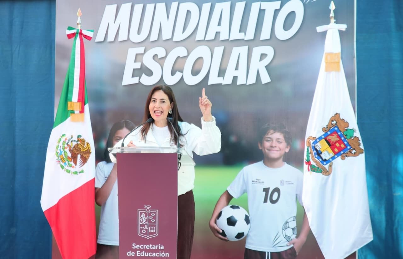 *Morelia, Michoacán, 20 de abril de 2026.-* La fase final estatal del Mundialito Escolar 2026 se desarrollará del 22 al 24 de abril. Con ello, se consolida esta estrategia como un espacio donde la educación se fortalece a través del deporte, la formación en valores y vivencias que dejan huellas positivas en miles de niñas, niños, jóvenes y sus familias, señaló la secretaria de Educación en el estado, Gabriela Molina.