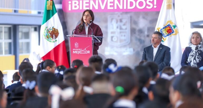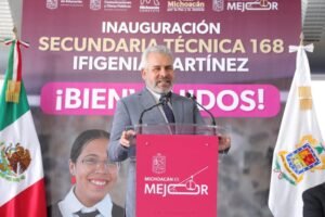 «Con el apoyo de la presidenta Claudia Sheinbaum Pardo, el corazón del Plan Michoacán por la Paz y la Justicia late en educación, no sólo por la inversión sino por ser eje central con el que se busca fortalecer el entorno escolar como un centro de transformación social», señaló la titular de la Secretaría de Educación del Estado (SEE), durante el evento de regreso a clases e inauguración de la Secundaria Técnica 168 “Ifigenia Martínez”.