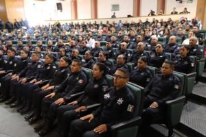 “Hoy concluyen su curso las y los elementos que durante tres meses fortalecieron sus conocimientos y habilidades para responder con eficacia a los retos actuales de la seguridad pública, y ahora con la garantía de obtener su Certificado Único Policial, requisito indispensable para el ejercicio de su labor”, señaló Barbosa Muñoz.