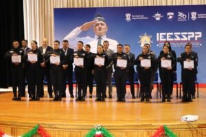 Durante la ceremonia de clausura, el subdirector de Profesionalización Policial, Roberto Miguel Barbosa Muñoz, en representación de la directora general, Maribel Julisa Suárez Bucio, destacó que los egresados cursaron 33 materias de formación, además de prácticas y estrategias conjuntas con distintas instituciones, lo que reforzó sus conocimientos y experiencia en la función policial.
