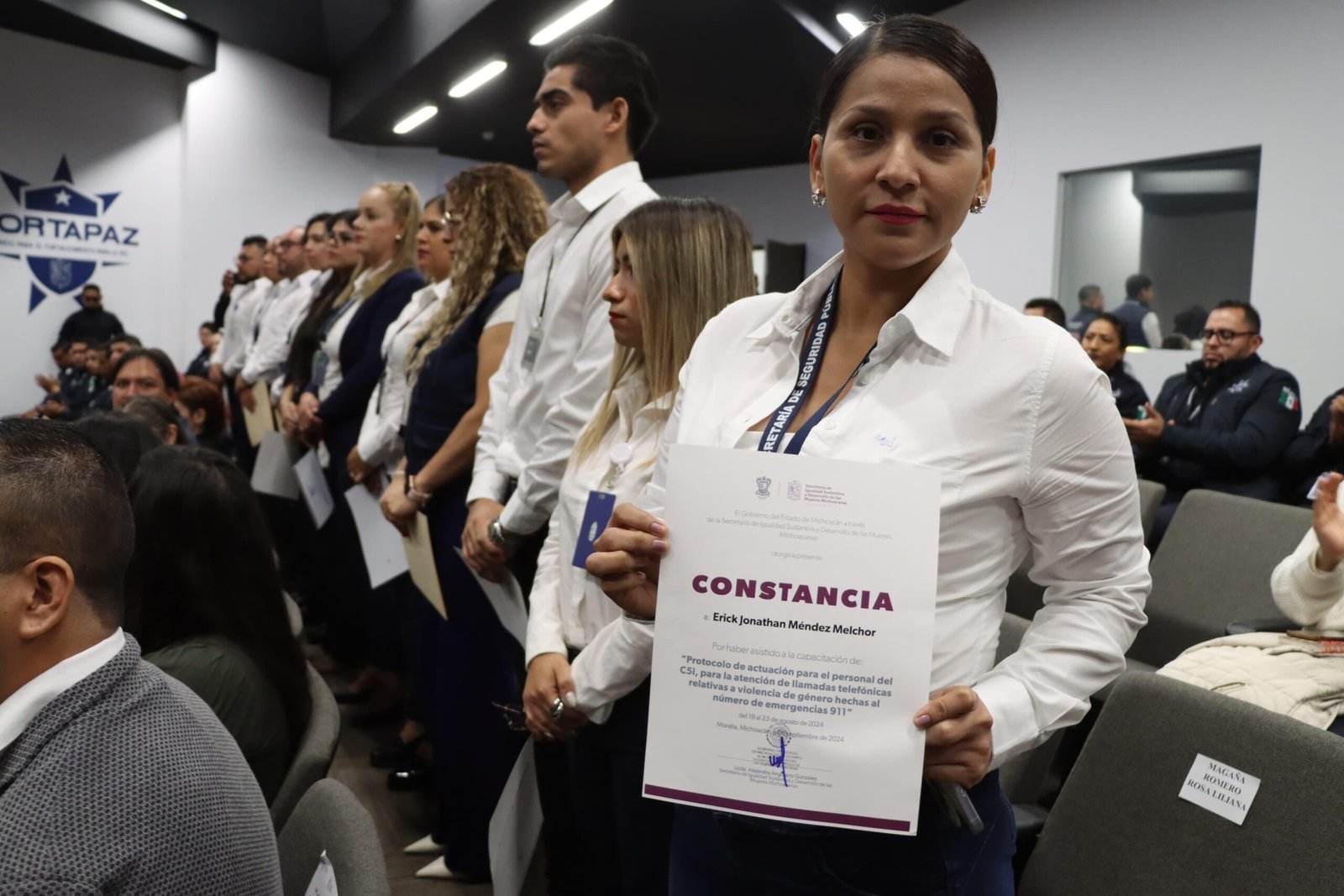 *Morelia, Michoacán, 6 de septiembre de 2024.-* Para avanzar en el objetivo de erradicar las diversas modalidades de violencia en contra de la mujer, se reconoció al personal del C5 Michoacán por concluir el curso de Atención de Llamadas Relativas a Violencia de Género al 911.