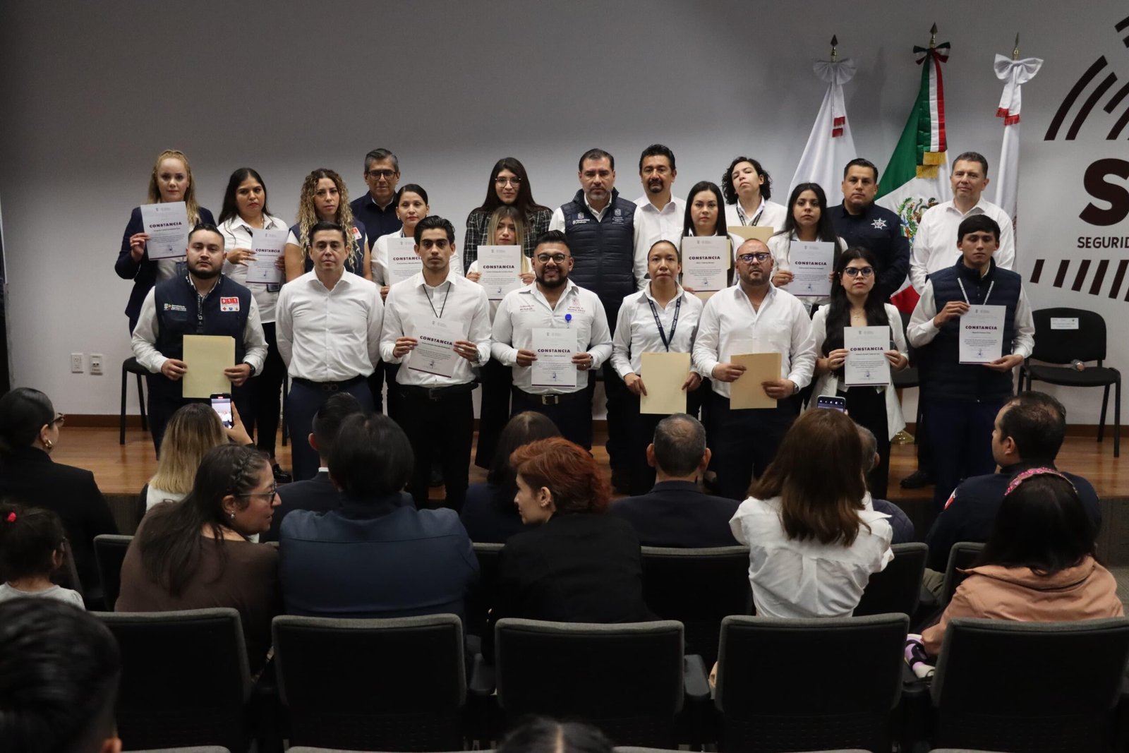 En una ceremonia presidida por el titular de la Secretaría de Seguridad Pública (SSP) Juan Carlos Oseguera Cortés y la secretaría de Igualdad Sustantiva y Desarrollo de las Mujeres (Seimujer) Alejandra Anguiano González, se entregaron constancias a 15 operadoras y operadores, quienes profesionalizaron su actuar laboral, para ofrecer una mejor atención telefónica y orientar a las mujeres a fin de evitar que sean violentadas.