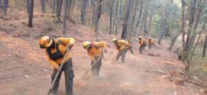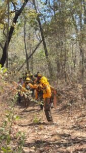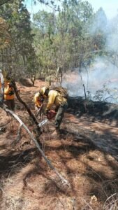 Asimismo, se contó con el apoyo de un helibalde perteneciente al Gobierno del Estado, que realizó nueve descargas el día de ayer en la zona afectada por el fuego.