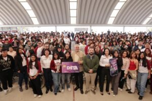 Acompañaron al gobernador la subsecretaria de Administración de la Secretaría de Educación, Patricia Flores Anguiano; el rector de la UTM, Sergio Pimentel Mendoza; el director general de Gobierno Digital, Juan Paulo Granados Gómez; entre autoridades estatales, docentes, y alumnas y alumnos beneficiados.