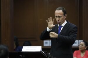 Alejandro Landín González abordó la obligatoriedad para la semaforización sonora en avenidas principales y en zonas de servicios de salud; mientras que Pilar Berenice Marín Ceja, habló sobre la importancia del impulso de programas gratuitos de enseñanza de lengua de señas mexicanas (LSM) para padres y familiares de personas sordas.