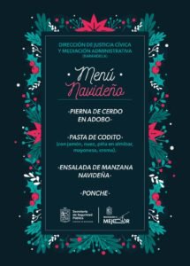 A través de la Dirección de Justicia Cívica y Mediación Administrativa (DJCMA), se preparará el menú, el cual contempla acompañar el platillo con sopa de codito, ensalada de manzana y ponche de frutas.