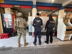 Derivado de trabajos de inteligencia e investigación, las autoridades intervinieron domicilios y locales comerciales, ubicados en las colonias Centro, Comunal Morelos y Las Guacamayas, logrando el aseguramiento de 185 máquinas tragamonedas, presuntamente utilizadas para actividades ilícitas.