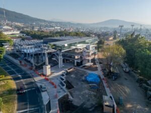 Precisó que la estación 1, ubicada en las inmediaciones del Hospital Regional del IMSS, presenta un avance del 96.5 por ciento; la estación 2 (libramiento oriente) del 92 por ciento; la estación 3 (Plaza Ágora) de 96.1 por ciento; la estación 4 (Presidencia) de 97.2; la estación 5 (Centro) de 92.9 por ciento, y la estación 6 (Mercado Poniente) de 88.7.