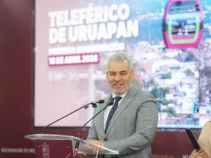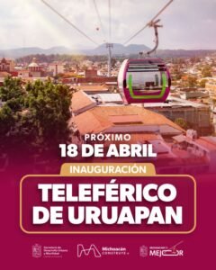 *Morelia, Michoacán, 2 de marzo de 2026.-* El próximo 18 de abril será inaugurado el teleférico de Uruapan, una obra en la que el Gobierno estatal invierte 3 mil 200 millones de pesos sin generar deuda pública y que beneficiará a más de 118 mil habitantes, así lo señaló el gobernador Alfredo Ramírez Bedolla.