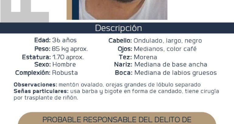 Por lo que ve a señas particulares, usa barba y bigote en forma de candado, además de contar con una cirugía por trasplante de riñón.