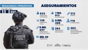 Durante este periodo también se cumplimentaron 366 órdenes de aprehensión, se participó en la realización 123 cateos y fueron localizados 29 narcocampamentos, además del decomiso de 8 mil 260 cartuchos, 716 cargadores y 293 artefactos explosivos, lo que refleja la intensificación de acciones de inteligencia, investigación y operación policial.