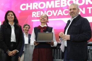 Señaló que la meta es que todo el nivel secundaría tenga chromebooks para mejorar su aprendizaje con el sistema Google Education, mismo que va de la mano con los lineamientos de la Secretaría de Educación federal.