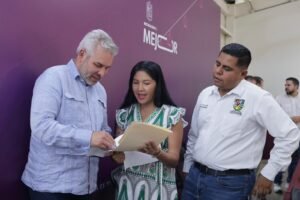 *Coahuayana, Michoacán, 15 de diciembre de 2025.-* El gobernador Alfredo Ramírez Bedolla entregó apoyos económicos para la rehabilitación de viviendas y comercios de víctimas afectados por la explosión del pasado 6 de diciembre en el municipio de Coahuayana.