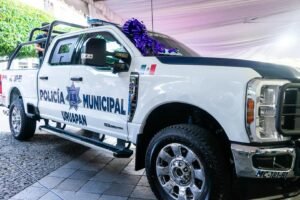 INFOMANIA/ URUAPAN, MICH./ LUN-18-AGO-2025/ El gobierno municipal de Uruapan que preside Carlos Manzo refrenda su compromiso con la población en materia de seguridad, al entregar tres patrullas nuevas de alto blindaje a la corporación de Seguridad Pública Municipal.