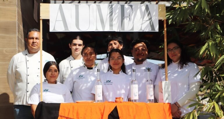 *Morelia, Michoacán, 13 de noviembre de 2025.-* Estudiantes del décimo cuatrimestre de la carrera de Gastronomía de la Universidad Tecnológica de Morelia desarrollan un proyecto, como parte de la materia integradora, para la comercialización del mezcal artesanal michoacano Aumea.