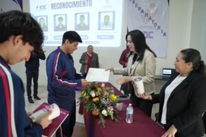 *Morelia, Michoacán, 15 de diciembre de 2025.-* El Instituto de Educación Media Superior y Superior del Estado de Michoacán (Iemsysem) reconoció a estudiantes y a un docente de la Preparatoria EDC de Tarímbaro, quienes obtuvieron el primer lugar nacional en el Premio Contacto 2025, otorgado por el Banco de México en la categoría de Trabajo escrito.