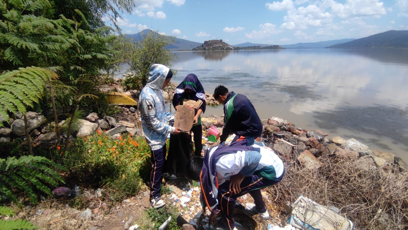 El responsable del centro educativo, Francisco Javier de la Cruz Guzmán, informó que las y los jóvenes realizaron labores de limpieza en la Isla de Janitzio, como parte de las acciones de conservación de este espacio, con lo que demostraron su compromiso con el medio ambiente.