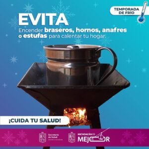 *Morelia, Michoacán, 27 de diciembre de 2024.-* Durante esta temporada invernal, la Secretaría de Salud de Michoacán (SSM) recomienda a la población no encender dentro del hogar fogones, braceros o la estufa para calentarse, ya que los gases que se producen son tóxicos para la salud.