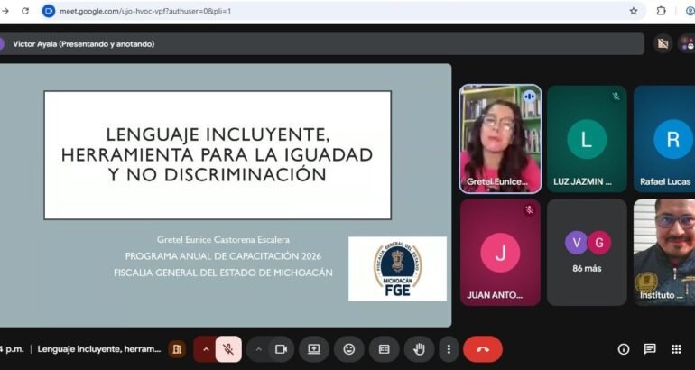 *Morelia, Michoacán, a 14 de marzo de 2026.-* La Fiscalía General del Estado de Michoacán, a través del Instituto de Capacitación y Servicio Profesional de Carrera (INCASEP), llevó a cabo la capacitación denominada “Lenguaje incluyente, herramienta para la igualdad de género”, como parte de su programa semanal de profesionalización.
