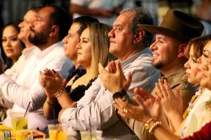 LOMBARDÍA (Gabriel Zamora), Michoacán, 15 de marzo de 2026.- En un gran ambiente festivo, inició anoche, la Feria del Mango 2026, donde los asistentes podrán disfrutar, durante una semana, de una serie de eventos artísticos, culturales y deportivos. En la inauguración, asistieron diversos invitados, quienes presenciaron un vistoso espectáculo piromusical.