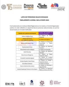 Grecia Aguilar da a conocer lista de seleccionados del Parlamento Juvenil Incluyente 2025