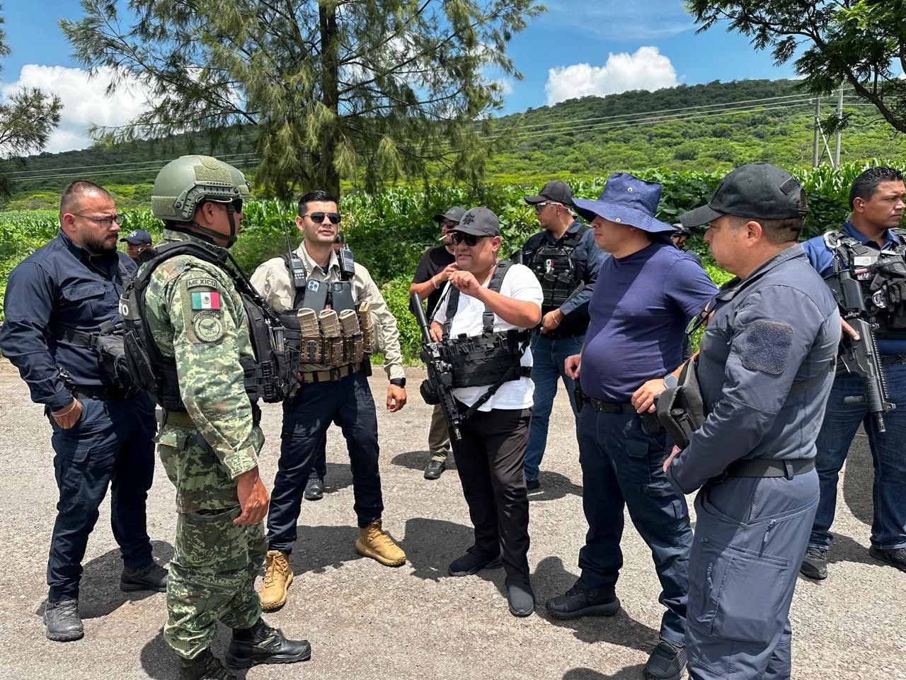 *Tangamandapio, Michoacán, 22 de agosto de 2024.-* El Gobierno del Estado a través de la Secretaría de Seguridad Pública (SSP), en coordinación con la Secretaría de la Defensa Nacional (Sedena), Guardia Nacional (GN), Fiscalía General del Estado (FGE) y elementos de corporaciones municipales, ampliaron e intensificaron la búsqueda para localizar a los siete policías comunales de la localidad de Cantera, municipio de Tangamandapio.
