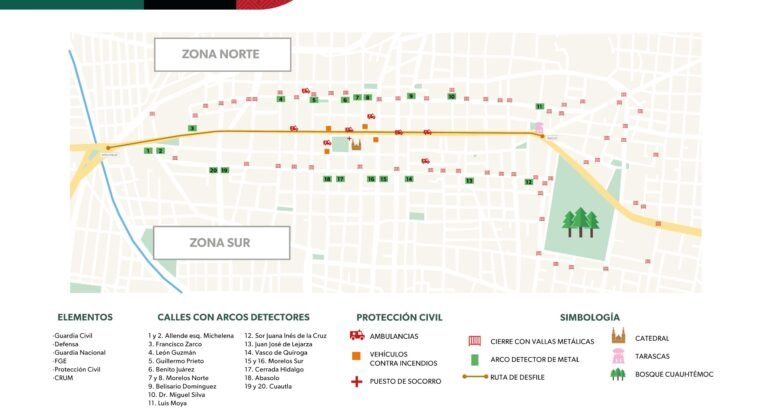 *Morelia, Michoacán, 26 de septiembre de 2025.-* En el marco del 260 Aniversario del Natalicio de José María Morelos y Pavón, la Secretaría de Seguridad Pública (SSP) establecerá un operativo integral de vigilancia, para garantizar el orden durante el desfile cívico militar del 30 de septiembre, con la habilitación de 20 puntos de acceso para el público que asista.
