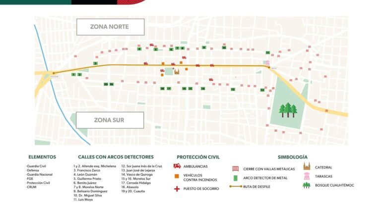 *Morelia, Michoacán, 26 de septiembre de 2025.-* En el marco del 260 Aniversario del Natalicio de José María Morelos y Pavón, la Secretaría de Seguridad Pública (SSP) establecerá un operativo integral de vigilancia, para garantizar el orden durante el desfile cívico militar del 30 de septiembre, con la habilitación de 20 puntos de acceso para el público que asista.