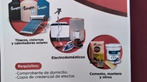 “Hogares con Bienestar” electrodomésticos, tinacos, cisternas, calentadores solares, cemento, mortero y materiales para construcción, con descuentos desde 20 y hasta 80 por ciento en relación con tiendas y centros comerciales, con lo que buscan mejorar el estado de la vivienda de decenas de familias.