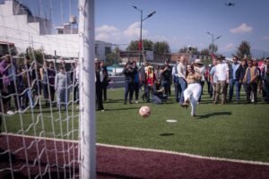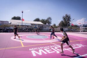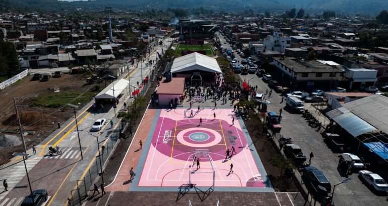 *Hoy se inauguraron en Uruapan tres calles que tenían 50 años sin mantenimiento. Se rehabilitaron con concreto hidráulico de alta resistencia, asegurando calles dignas para los habitantes de la colonia Antorchistas. Además se entregaron 3 canchas de básquetbol y una de futbol. ⚽️🏀*