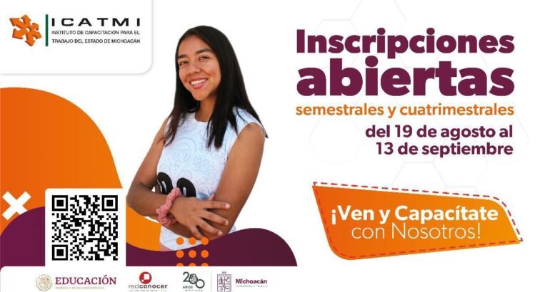Las inscripciones a todos los cursos comenzaron ayer lunes y se mantendrán hasta el 13 de septiembre en los 22 planteles del Icatmi en el estado, así como en las más de 13 acciones móviles y más de 300 acciones extramuros que se imparten en zonas alejadas y comunidades de Michoacán, donde las personas interesadas pueden inscribirse directamente en el plantel o acción móvil más cercana y en línea a través de icatmi.edu.mx/consultas/cursos.