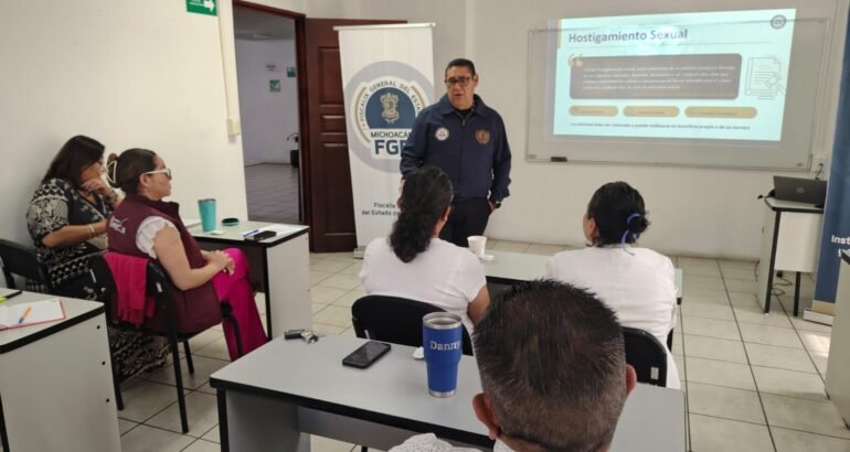 *Morelia, Michoacán, a 20 de abril de 2026.-* En línea con la visión del Fiscal General, Carlos Torres Piña, de fortalecer el bienestar integral del personal, la Fiscalía General del Estado de Michoacán (FGE), a través del Instituto de Capacitación y Servicio Profesional de Carrera, impartió la capacitación “Prevención, Atención, Actuación y Sanción en casos de Hostigamiento y Acoso Laboral y/o Sexual”, con el objetivo de consolidar entornos laborales seguros, respetuosos y libres de violencia.